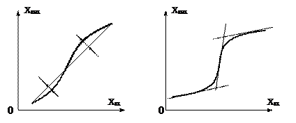 Незважаючи на обмеження лінійних моделей, їх роль у ТОУ дуже велика. Це пояснюється тим, що припущення про лінійність системи в ряді випадків не призводить до недопустимих помилок, а з іншого боку суттєво спрощує дослідження системи. Ілюстрація способів лінеаризації приведена на рис. 2.1 і рис. 2.2.