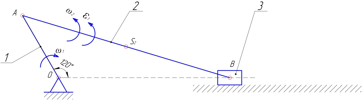 является перпендикуляром к оси кривошипа 1, а направление действия этого вектора совпадает с направлением вращения кривошипа.