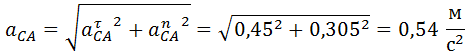 Вектор скорости точки А представляет собой геометрическую сумму вектора скорости точки О и скорости относительного вращательного движения точки А вокруг точки О: