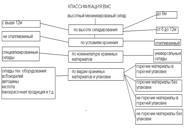 Тушения пожаров внутри высотных механизированных складов с помощью передвежной пожарной техники обусловлена характеристикой складов (большая высота, стесненность проходов, значительная скорость распространения горения, быстрая потеря несущей способности металлических конструкций и т.п.), представляет собой сложную техническую и тактическую задачу, особенно в складах высотой более 16 м (до настоящего времени не найдено оптимального решения по оборудованию их автоматическими установками пожаротушения), а также складов с хранением лаков, красок, ЛВЖ и ГЖ, автошин, резинотехнических изделий, каучука и смол, химической продукции, медикаментов, тлеющих материалов (хлопок, табак ), складов со стационарными и передвижными стеллажами.