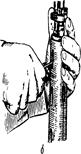 | Утримуючи гвинтівку лівою рукою за ствольні накладки, обхопити магазин правою рукою, натиснути великим пальцем на защіпку, подати нижню частину магазина вперед і відокремити його
