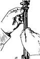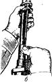 | Вставити затвор циліндричною частиною в канал затворної рами; повернути затвор так, щоб його ведучий виступ увійшов у фігурний виріз затворної рами, і просунути затвор уперед до упору