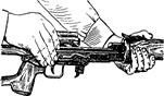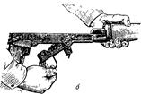 | Відвести затвор назад; повернути його так, щоб ведучий виступ затвора вийшов з фігурного вирізу затворної рами, і вивести затвор уперед