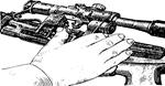 | Сумістити пази на кронштейні прицілу з виступами на лівій стінці ствольної коробки, просунути приціл уперед до кінця і повернути ручку затискного гвинта у бік об’єктива до заходу її відгину у виріз на кронштейні