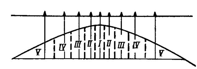 Другим прикладом нерiвномiрного розмiщення свердловин може бути методика Г.А. Габрiелянца для розвiдки масивних покладiв нафти i газу. Суть її вiдображена на рисунку 13.1 i полягає в такому розмiщеннi свердловин, коли кожна з них висвiтлює приблизно однаковий об’єм покладу. При цьому свердловини можуть розташовуватись як профiлями, так i мережами. Така методика забезпечує закладання основного числа свердловин в присклепiннiй частинi покладу, де може бути сконцентровано 70–80 % запасiв; проте їй властивi тi ж обмеження, що i в попередньому випадку: необхiдна впевненiсть в надiйному картуваннi структури.