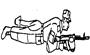 | Швидко повернутися на живіт, розвести ноги трохи у сторони носками назовні. Приклад автомата тримати під пахвою (рос. мышкою). Доповісти, наприклад: “Рядовий Петренко до бою готовий” |