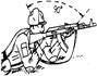 | Утримуючи автомат лівою рукою за цівку або за магазин, а правою за пістолетну рукоятку, уперти приклад у плече таким чином, щоб відбулося щільне прилягання до плеча всього затильника автомата. Вказівний палець правої руки на спусковий гачок не накладати! | |