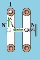 Когда вам нужна первая передача, то первым действием, преодолевая усилие пружины, вы переводите шарик в соседний коридор налево до легкогосоприкосновения со стенкой (рис. 17, поз. N').