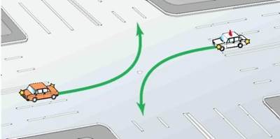 • При одновременном повороте налево на больших перекрестках – разъезжаемся правыми бортами, а на маленьких– левыми.