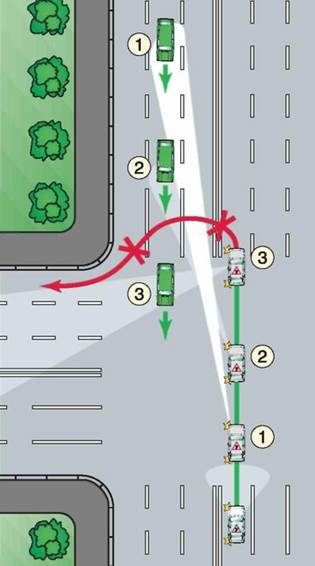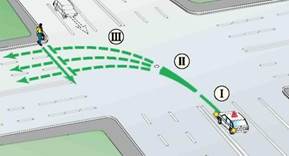 Рис. 79. Поворот налево на дорогу с тремя полосами