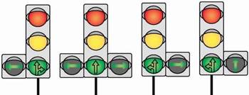 Эти выводы относятся не только к зеленой стрелке направо, но и к любому другому направлению движения, указанному в дополнительной секции светофора (рис. 98).