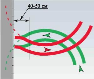 2. За 40–50 см до предполагаемого места остановки руль быстро повернуть направо, настолько, насколько это будет возможно на таком расстоянии, и сразу же остановить машину.