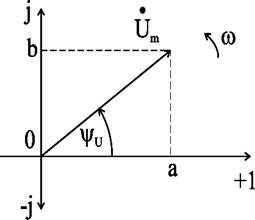 Рис.2.11. Изображение вектора напряжения синусоидальной величины на комплексной плоскости