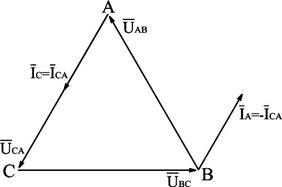 Рис.3.22. Электрическая схема трёхфазной системы, соединённой треугольником, с отключенными двумя фазами