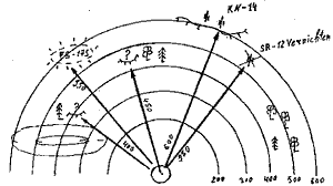 Схема 93. Карточка огня немецкого снайпера с нанесенными на ней кругами расстояний до предполагаемых целей и ориентиров