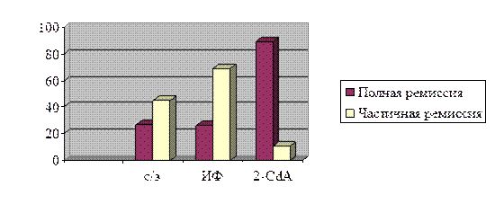 | Вид лечения | Данные литературы (E.Matutes, 2003г, 52 больных) | Собственные данные (2007г, 42 больных) | |||||