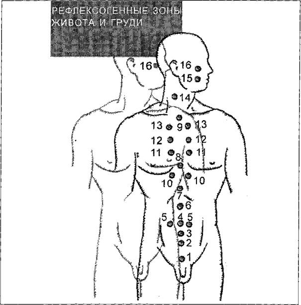 Рефлексогенные зоны живота в основном расположены на средней линии, которая проходит по белой линии передней брюшной стенки.