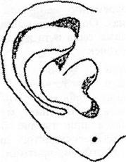В самом центре мочки находится точка зрения. Существует предание, что славянские охотники, для того, чтобы улучшить зрение, прокалывали центр мочки уха. Конечно, они понятия не имели о восточных методах лечения и дошли до этой манипуляции благодаря собственным наблюдениям.