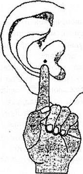 Расположена она в самой углублённой части ушной раковины. Для того, чтобы её найти нужно сначала указательным пальцем нащупать наружное слуховое отверстие, а затем палец сдвинуть приблизительно на 1 сантиметр к затылку. Нажатие на эту точку, так же как и на все остальные, производится указательным пальцем.