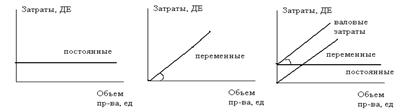 Постоянные затраты существуют с момента создания предприятия независимо от ведения производства и реализации продукции, а переменные возникают с началом производственного процесса и при его прекращении сводятся к нулю.
