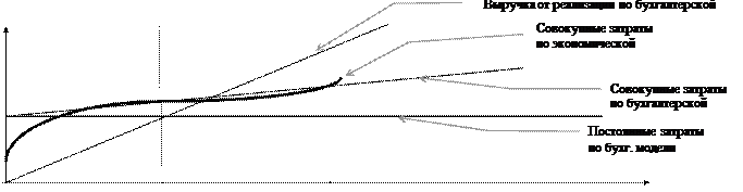 Принципиальное различие бухгалтерской модели от экономической - в первой лишь одна точка безубыточности, а не две, как в экономической модели.