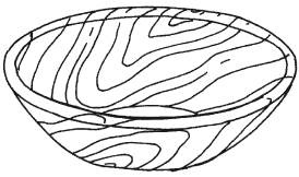 Вращающуюся болванку отшлифуй мелкозернистой шкуркой и отполируй конским волосом, сушеным хвощем или древесными опилками. Не прекращая вращения, изделие можно покрыть тонким слоем лака или восковой мастики. Только после этого срежь получившееся изделие с оставшегося куска древесины. Довольно востребованными среди деревянных изделий являются предметы домашнего обихода — блюда, плошки, кружки, стаканы и кувшины (рис. 16–18). Для изготовления точеных плошек чаще всего используют старые сосновые бруски, древесина которых уже от времени приобрела яркий золотистый цвет с четкими бурыми прожилками.