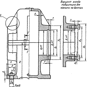 | Рис. 20. Пример конструирования крепления подшипникого узла с закладной крышкой болтами | ||||||||
