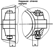 | Рекомендуемые расстояния: а – от оси болта до стенки; b – от посадочного диаметра крышки |