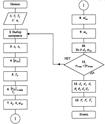 Рис. 31. Блок-схема расчета открытой конической зубчатой передачи