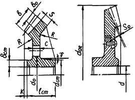 Все особенности конструирования, перечисленные для открытых зубчатых цилиндрических колес, можно отнести и к открытым зубчатым коническим колесам. Выработанные практикой параметры конструкции для конических колес представлены на рис. 32.