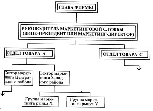На рис. 1.3. показан пример матричной схемы организации маркетинга.