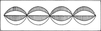 С помощью полукруглой стамески можно выполнить самые разнообразные узоры. Если поворачивать ее все время в одну сторону, то получится круг. А если чередовать ноготки или лунки, направленные то вверх, то вниз, тогда получится орнамент в виде волны.