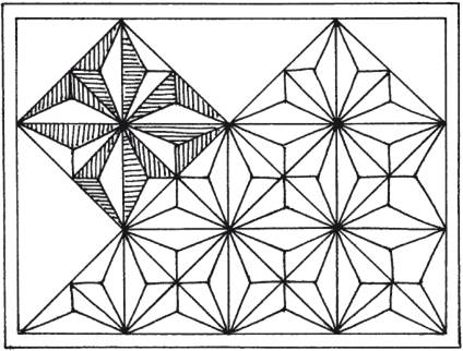 Теперь можно приступить к разметке внутреннего пространства композиции. Квадраты разбей на более мелкие, а затем на треугольники, которые можно вписать в окружности или овалы для розеток.