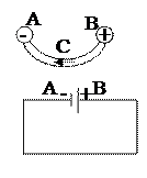 Если два разноименно заряженных до потенциалов j1 и j2 проводника А и В соединить проводником С, то под действием электрического поля электроны будут перемещаться в направлении АСВ (т.е. в направлении ВСА пойдет ток