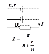 Сила тока в замкнутой цепи прямо пропорциональна э.д.с. проводника тока и обратно пропорциональна сумме сопротивлений внутренних и внешних участков цепи.