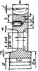 В серийном и массовом производстве применяют биметаллическую конструкцию червячного колеса, бронзовый венец которой отлит в форму с предварительно вставленным в него центром. Для гарантии от смещения венца на заливаемой поверхности центра выполняют пазы различной формы (см. рис. 38,б).