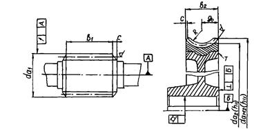 На изображении червячного колеса (рис.40) указывают: диаметр вершин зубьев
