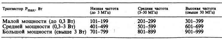 - Третий элемент - трехзначное число от 101 до 999 - указывает порядковый номер разработки и назначение прибора. Это число присваивается транзистору по признакам, приведенным в таблице.