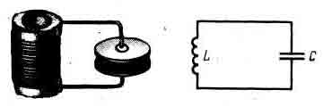 В любом простейшем радиовещательном приемнике, независимо от его сложности, совершенно обязательно есть три элемента, обеспечивающие ему работоспособность. Эти элементы - колебательный контур, детектор и телефоны или, если приемник с усилителем 3Ч, динамическая головка прямого излучения.Колебательный контур: - устройство простейшего колебательного контура и его схема изображены на рис. 5. Он, как видите, состоит из катушки L и конденсатора С, образующих замкнутую электрическую цепь в которой при определенных условиях в контуре могут возникать и существовать электрические колебания. Поэтому его и называют колебательным контуром.