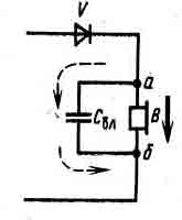 | Рис. 15 В точке а детекторной цепи составляющие пульсирующего тока разделяются, а в точке б, соединяются. |