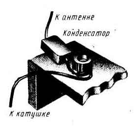 | Рис. 4 Конденсатор включенный в цепь антенны, улучшает селективность приемника. |