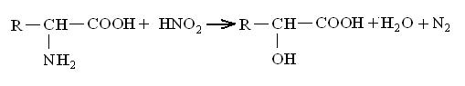 Эту реакцию используют для определения аминокислот по количеству выделившегося газообразного азота (метод Ван — Сляйка).