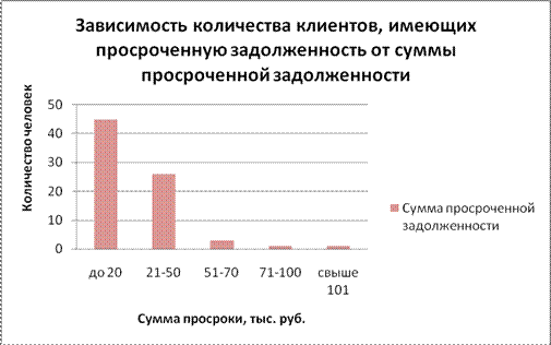 Рисунок 3.3 - Зависимость количества клиентов, имеющих просрочку от суммы просрочки