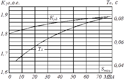 Рисунок 1 – Кривые для определения ударных коэффициентов и постоянных времени затухания апериодической составляющей тока КЗ при коротком замыкании за трансформатором собственных нужд.