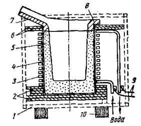 Один из вариантов электротермических установок – индукционная тигельная печь. На рис. 1.3 представлена схема печи.
