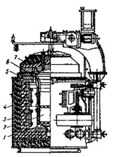 Ниже электропечи расположен подъемный под, движение которого вверх осуществляется гидравлическим или электромеханическим приводом.
