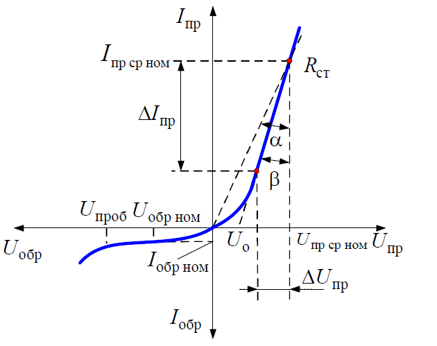 где Iпр – величина прямого тока диода; Uпр – падение напряжения на диоде при протекании тока Iпр.