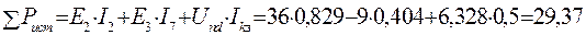 - алгебраическая сумма мощностей источников ЭДС; здесь положительны те из слагаемых, для которых направление действия ЭДС Е и соответствующего тока
