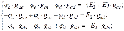 Составим узловые уравнения для оставшихся трёх узлов а, в и d, потенциалы которых неизвестны: