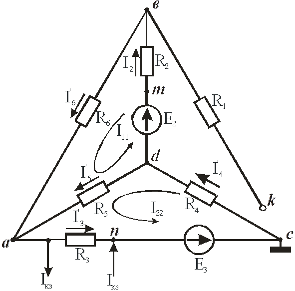 Выберем на схеме независимые контуры и направления обхода в них согласно рис. 18.